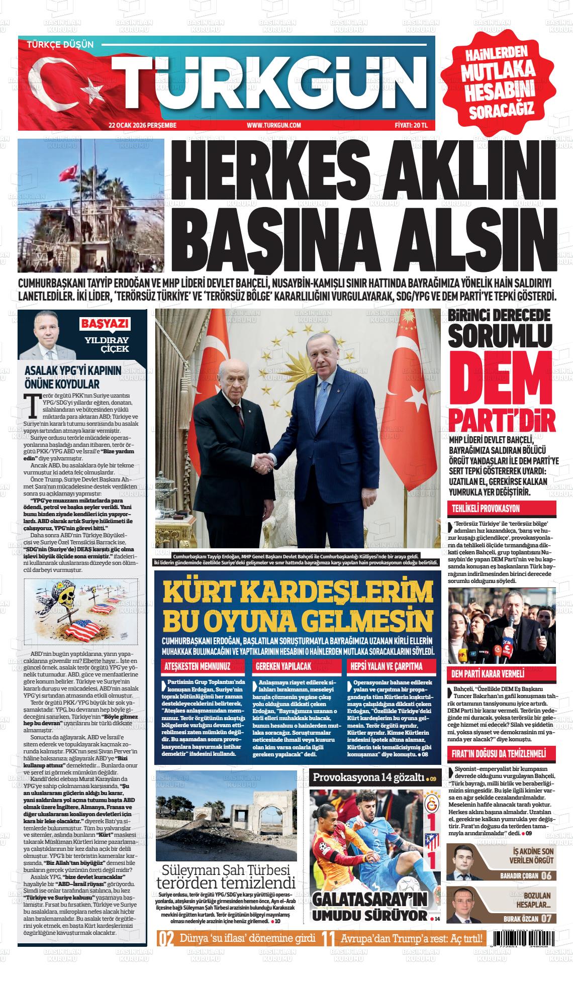 TÜRKGÜN Gazetesi 06 Ekim 2022, Perşembe Günü Manşeti