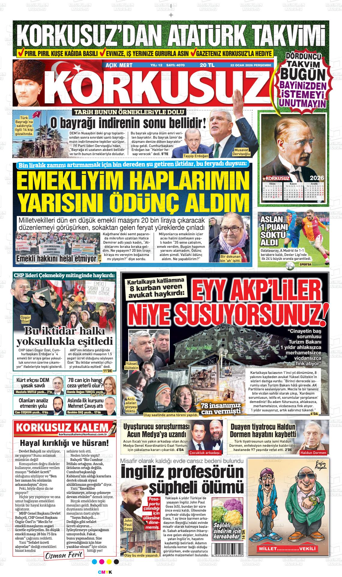 AÇIK MERT KORKUSUZ Gazetesi 29 Eylül 2022, Perşembe Günü Manşeti