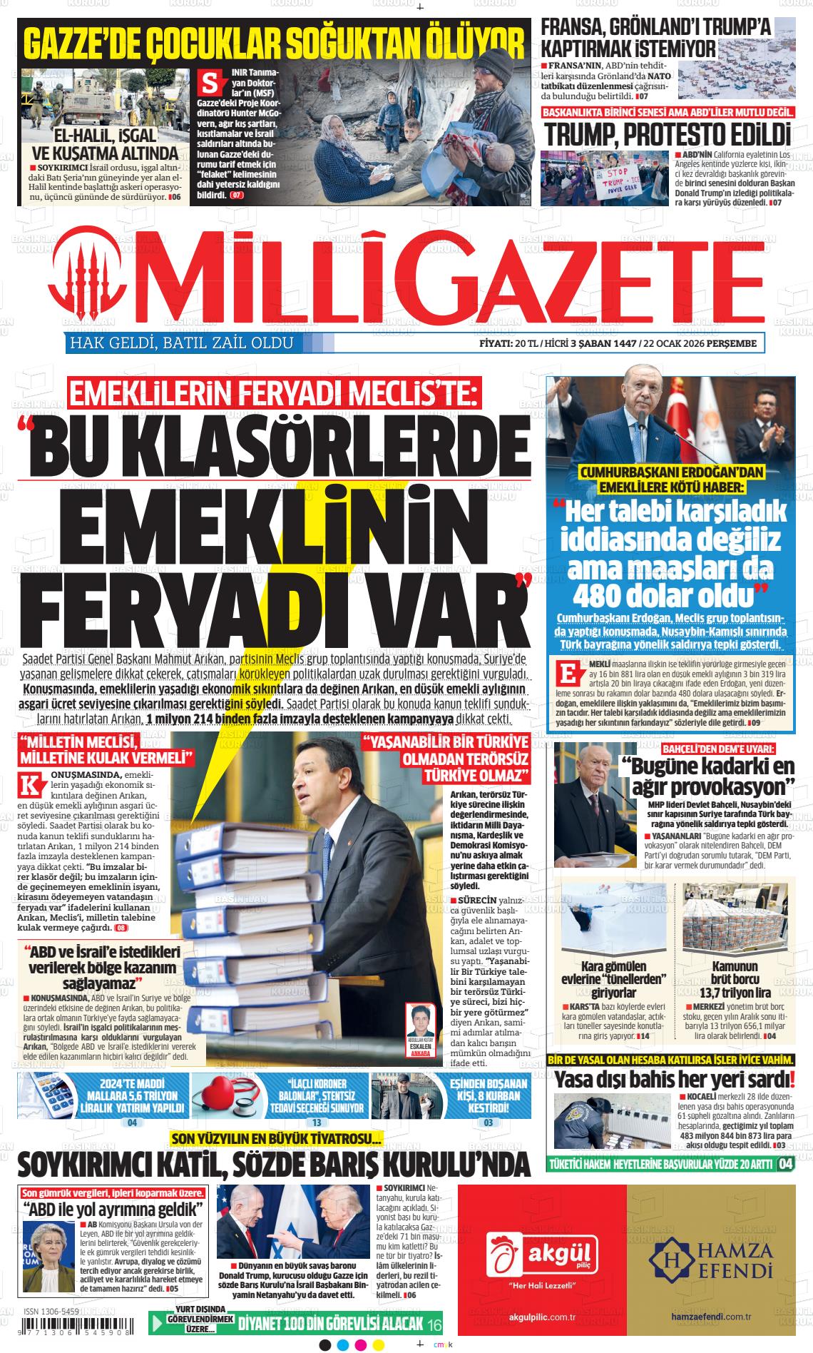 MİLLİ GAZETE Gazetesi 29 Eylül 2022, Perşembe Günü Manşeti