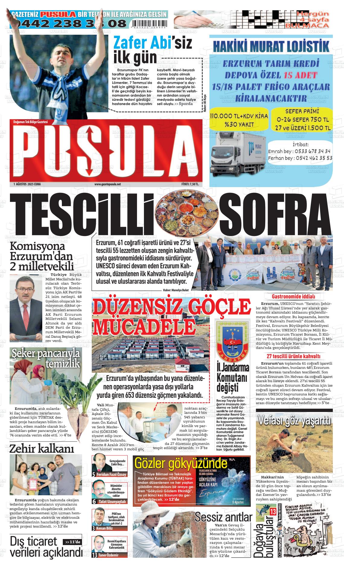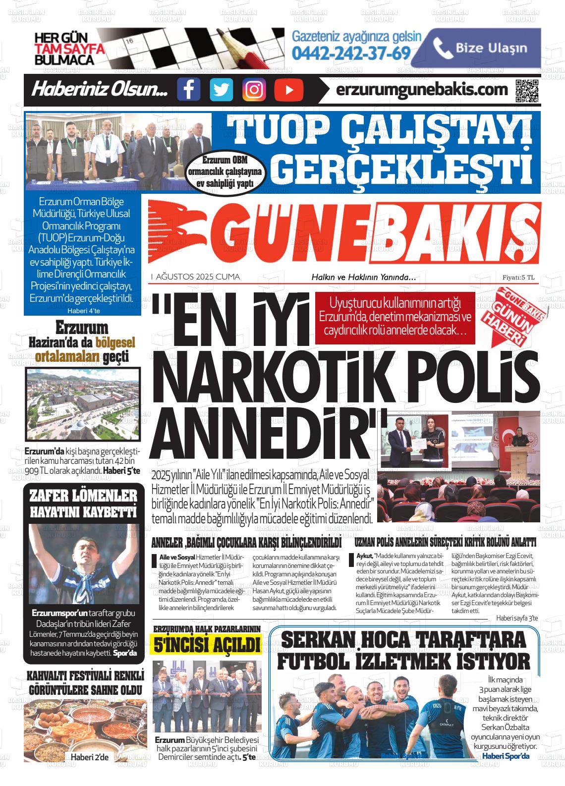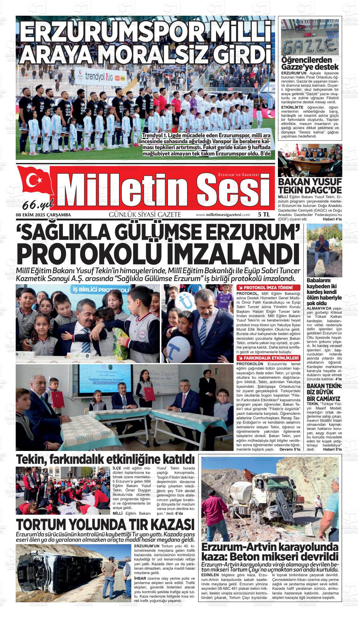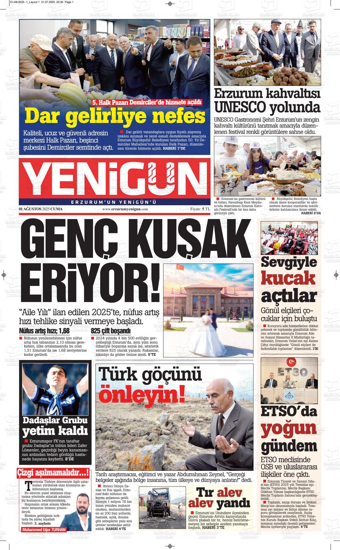Erzurum Yerel Gazeteleri 08 Ocak 2026, Perşembe Günü Manşeti