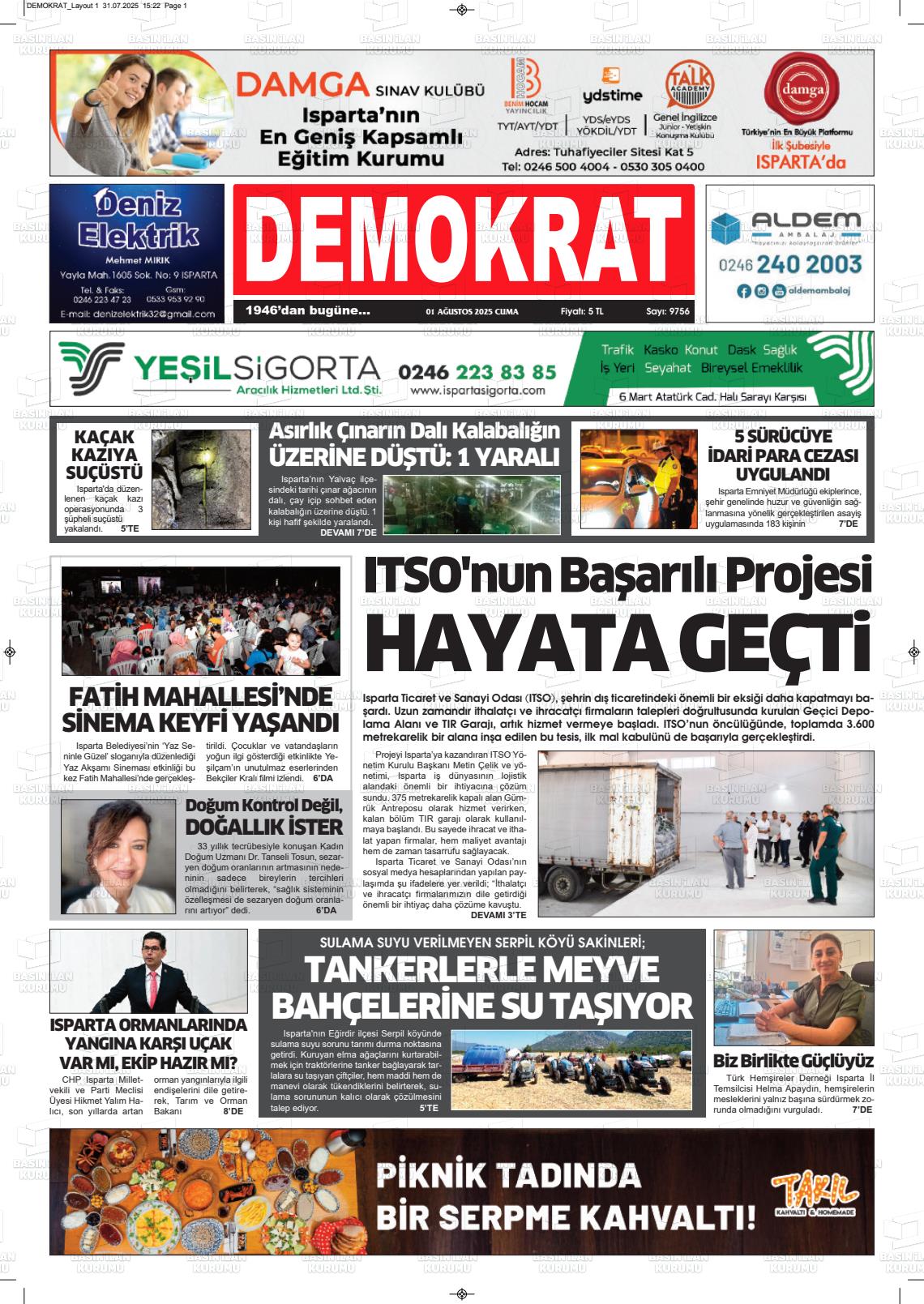 Isparta Yerel Gazeteleri 08 Ocak 2026, Perşembe Günü Manşeti