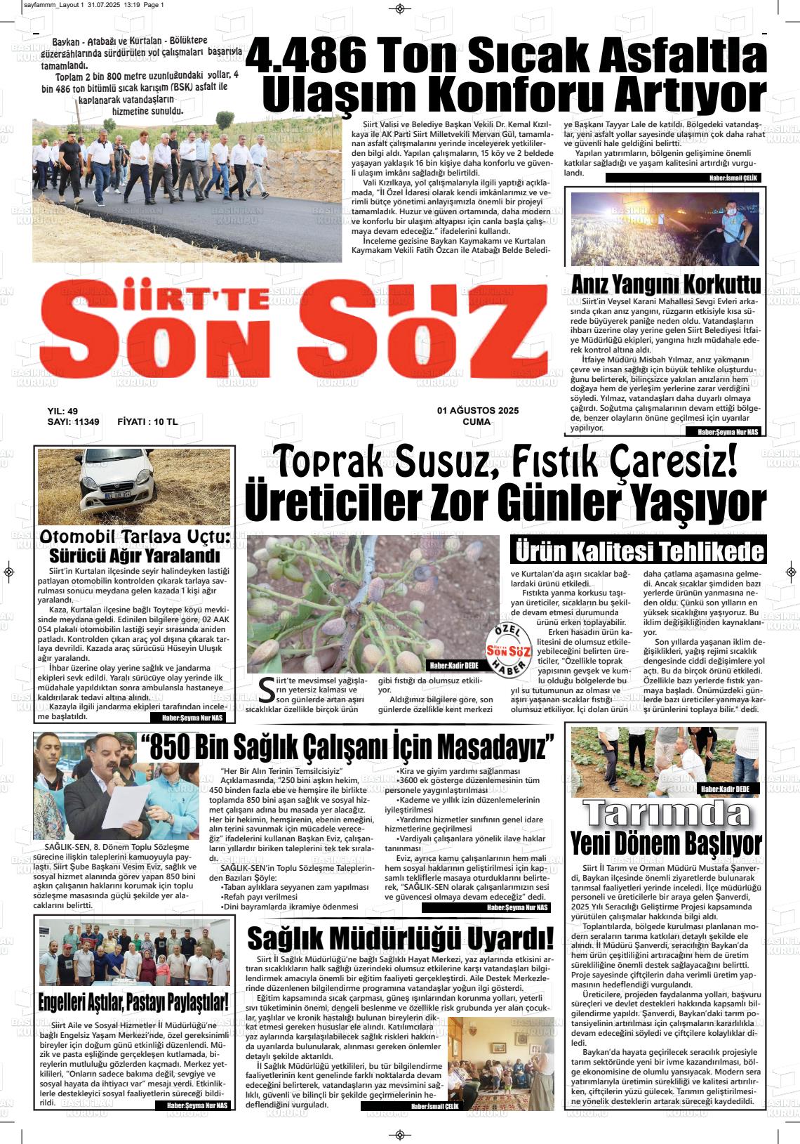 Sİİrt Yerel Gazeteleri 11 Şubat 2026, Çarşamba Günü Manşeti